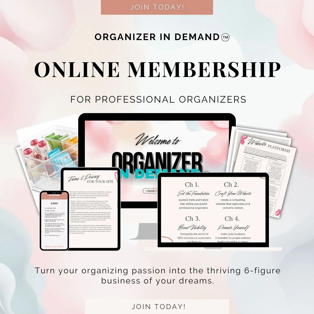 After listening closely (for years) to the needs and desires of my incredible community, I've crafted this membership with one goal in mind: to provide you with the clarity, strategies, and support you need to transform your organizing passion into a thriving business. The Organizer In Demand Membership is born from your feedback, designed to tackle your most pressing challenges and fears, and propel you forward on your journey to success.