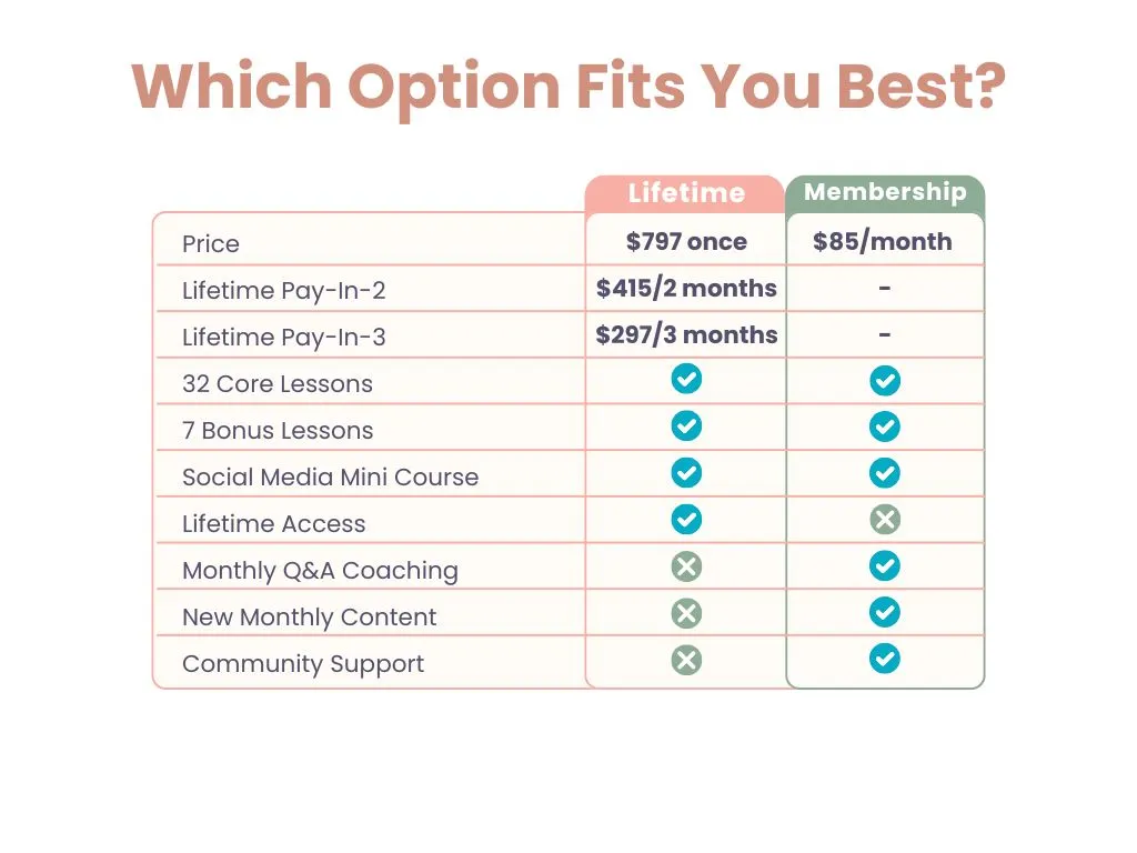 You can purchase the full course curriculum outright instead of joining the membership for $797 (payment plans available).